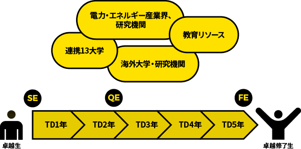 「卓越大学院プログラム」は、各大学が自身の強みを核に、これまでの大学院改革の成果を生かし、国内外の大学・研究機関・民間企業等と組織的な連携を行いつつ、世界最高水準の教育力・研究力を結集した5年一貫の博士課程学位プログラムを構築することで、あらゆるセクターを牽引する卓越した博士人材を育成するとともに、人材育成・交流及び新たな共同研究の創出が持続的に展開される卓越した拠点を形成する取組を推進する事業です。